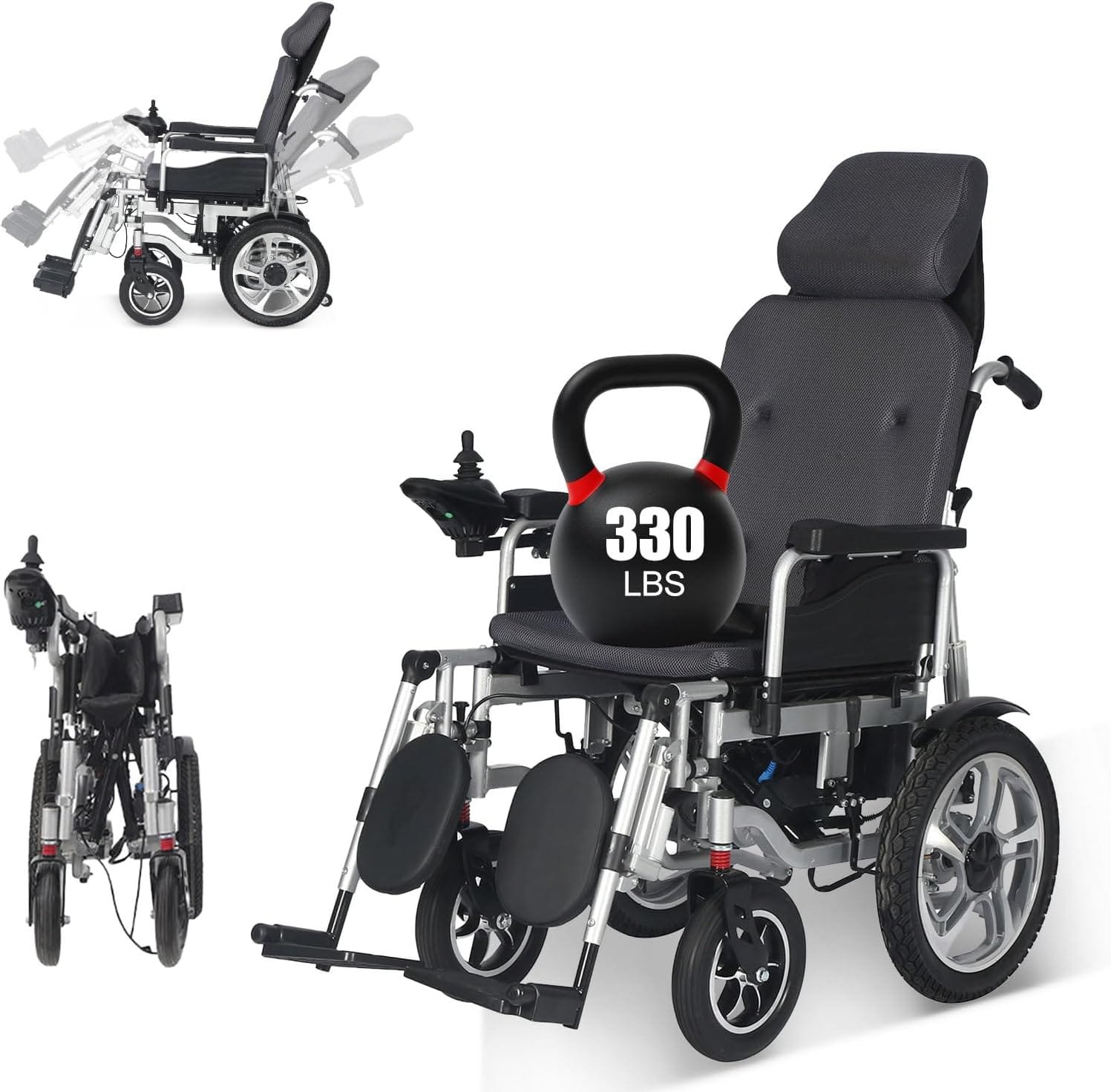 Sillas de ruedas eléctrica plegables para adultos, silla de ruedas eléctrica ligera todo terreno, respaldo ajustable de 90° a 160°,